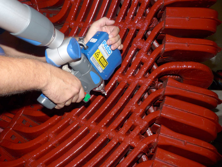 حتى في ظروف سهولة الوصول المنخفضة، تتمتع هذه المعدات المتخصصة بدورات غير محدودة لكل محور ذراع لضمان دقة القياسات. في الممارسة العملية، غالبًا ما نستخدم معدات الهندسة العكسية لقياس هندسة لفائف المولد مع أنظمتها الداعمة. يجعل استخدام هذا القياس من الممكن تحديد المعلمات بسرعة ودقة بطريقة مستحيلة باستخدام الطرق التقليدية.